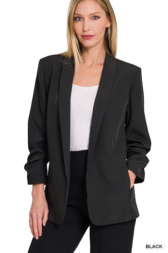 Black Ruched Sleeve Blazer
