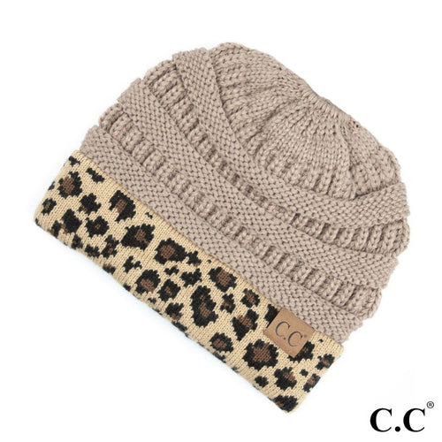 CC Leopard Messy Bun Beanie