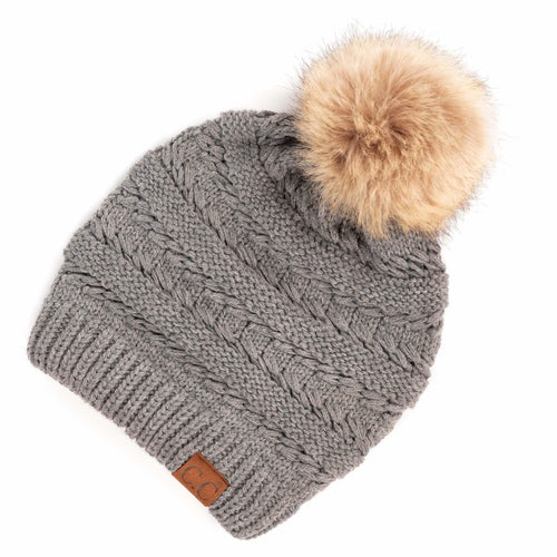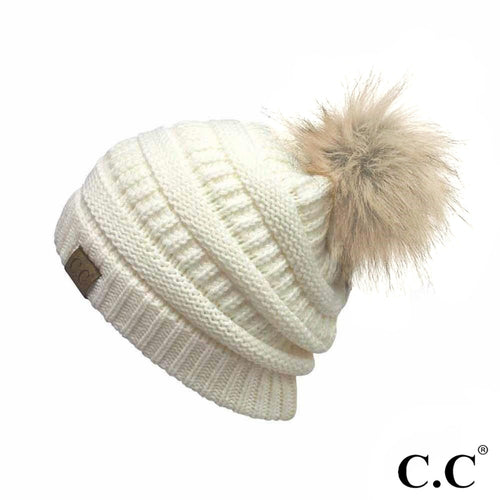CC Ivory Ribbed Pom Beanie