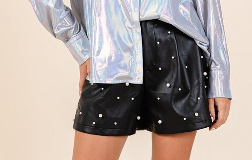 Pop Of Pearl Leather Shorts