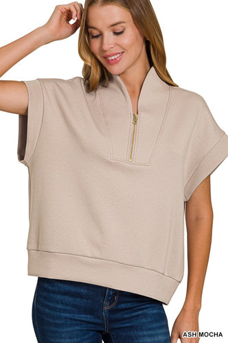 High Neck Scuba 1/2 Zip-Ash Mocha